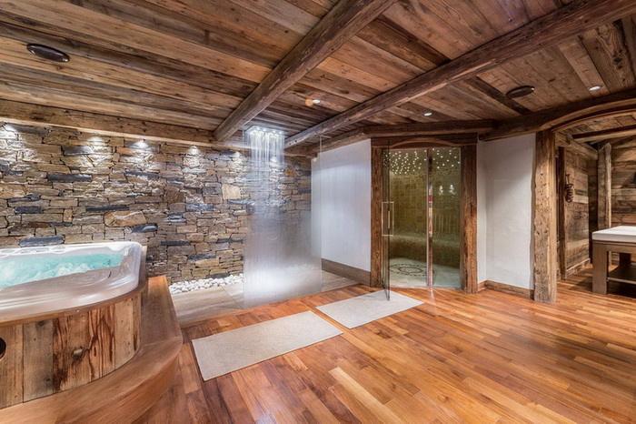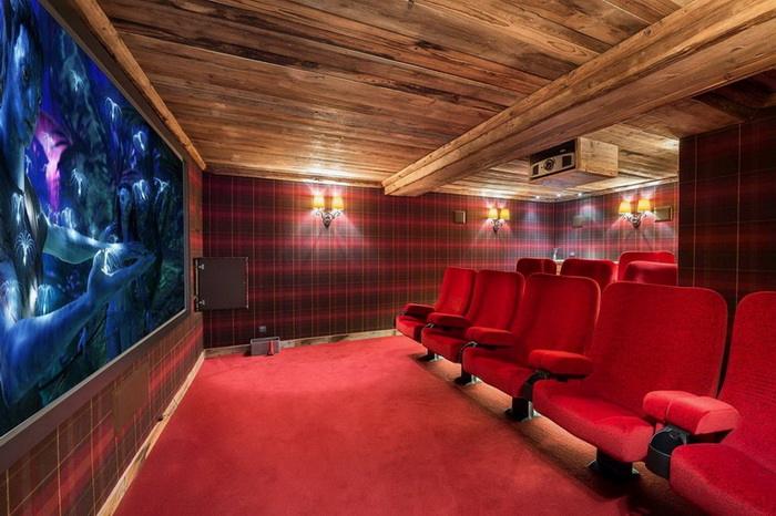 On the lower level, guests can unwind in the chalet’s spa, complete with a soothing indoor Jacuzzi, Hammam, sensory shower, and massage room. For entertainment, the private cinema room, featuring traditional red seating and a giant screen, offers the ultimate movie-night experience.