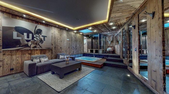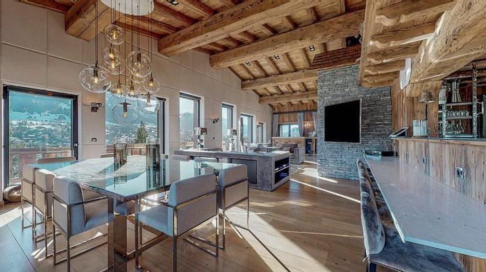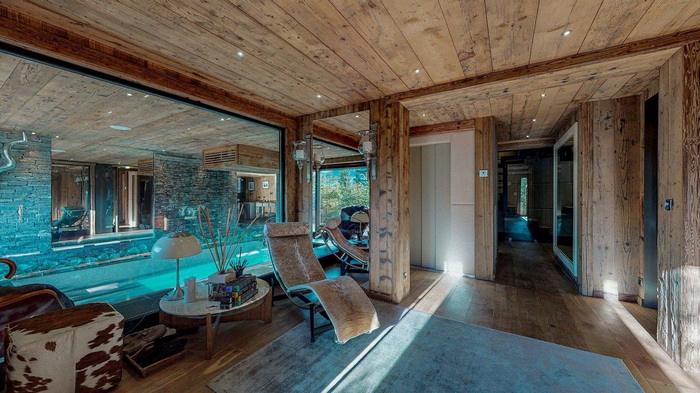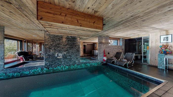 Designed for ultimate comfort, it includes a private indoor swimming pool, sauna, and multiple spacious living areas—perfect for both social gatherings and peaceful relaxation. Every detail of this mountain retreat has been carefully crafted to provide a warm yet sophisticated ambiance, making it the ideal haven for families or groups seeking a luxurious alpine escape.