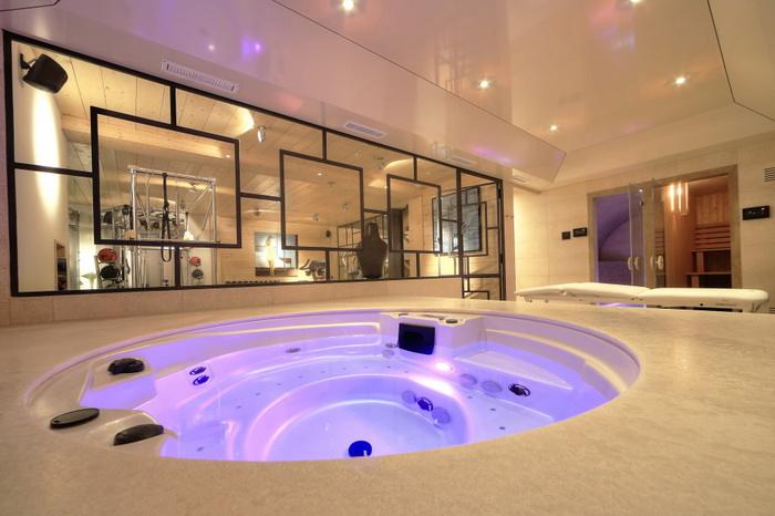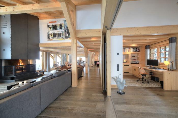 The spacious living area features a double lounge with a fireplace, a sleek open kitchen with dining area, and a private office. Guests can unwind in the exceptional wellness area, complete with an outdoor pool, jacuzzi, sauna, and steam room. Additional amenities include a cinema room, gym, library, children’s play area, and a four-car garage — perfect for an unforgettable stay in Megève.