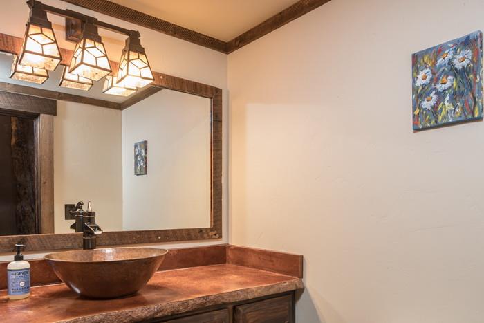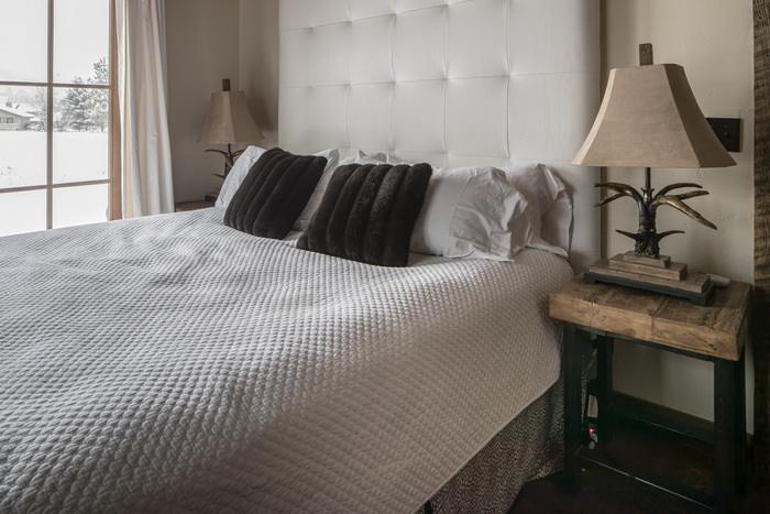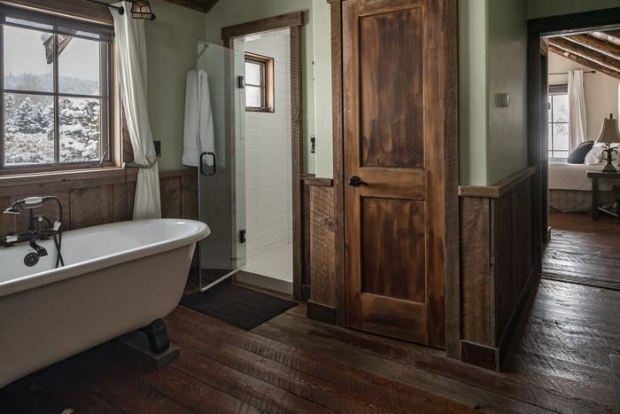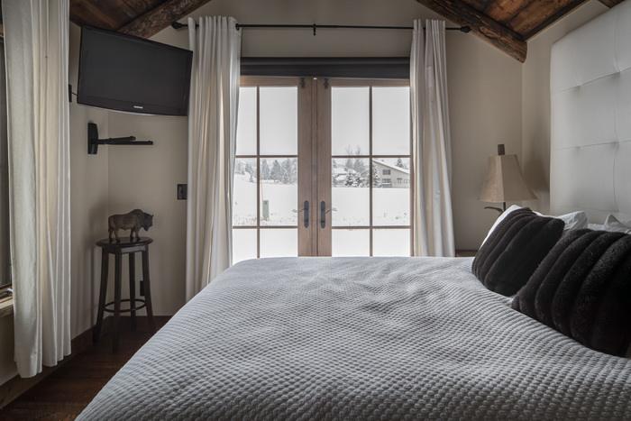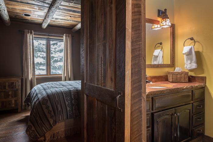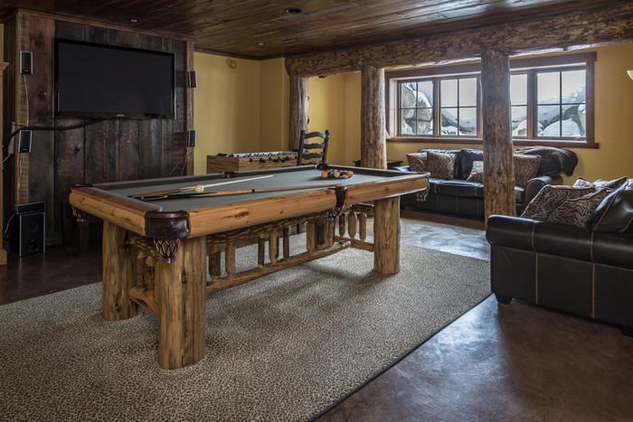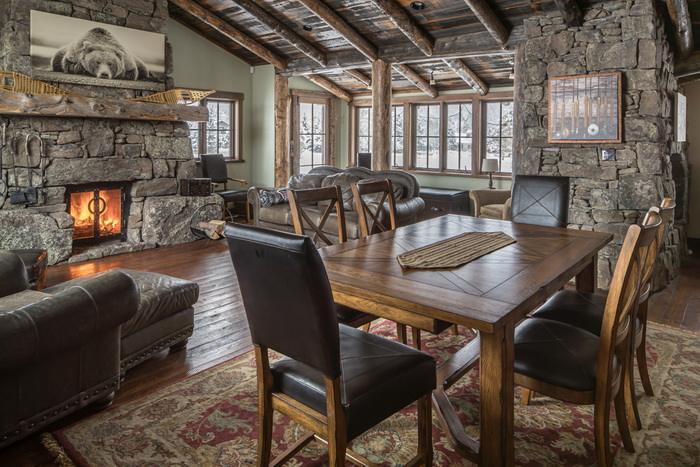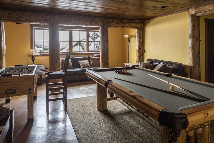 Crafted from local timbers and stone, the chalet exudes authentic alpine warmth. Inside, guests can unwind beside the wood-burning fireplace, enjoy a drink on the patio overlooking the mountains, or spend cosy evenings in the home theatre. Modern bathrooms, radiant heating, and high-end finishes ensure every comfort is met.