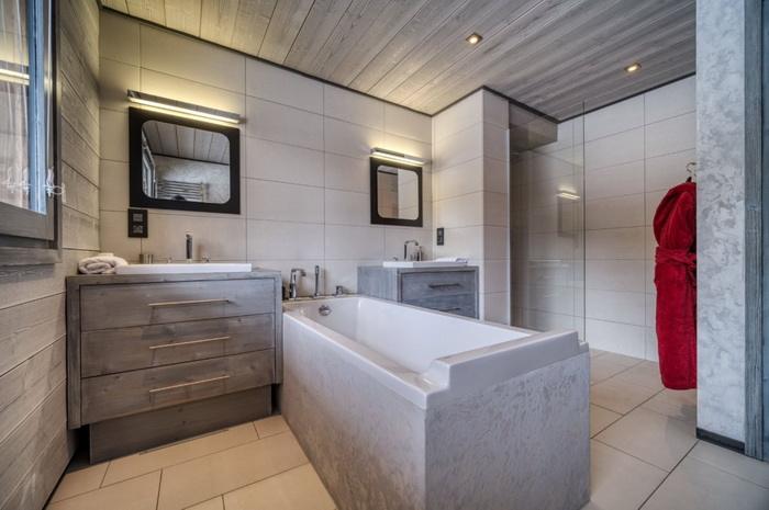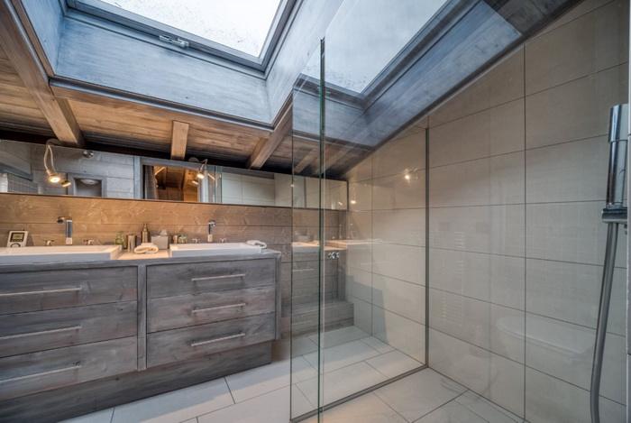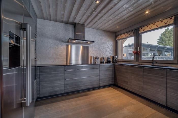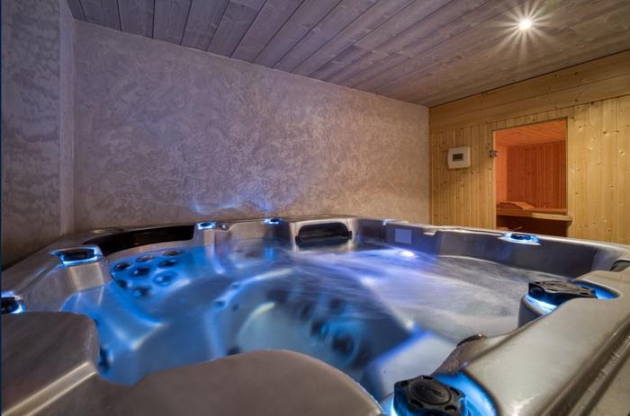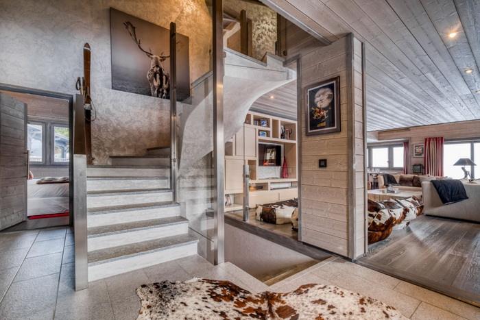 On the lower ground floor, guests will find a private cinema room, a wellness area with sauna and Jacuzzi, a fitness room, and a fully equipped ski room. This level also includes a wine cellar, laundry room, and a 55m² enclosed garage accommodating two vehicles.